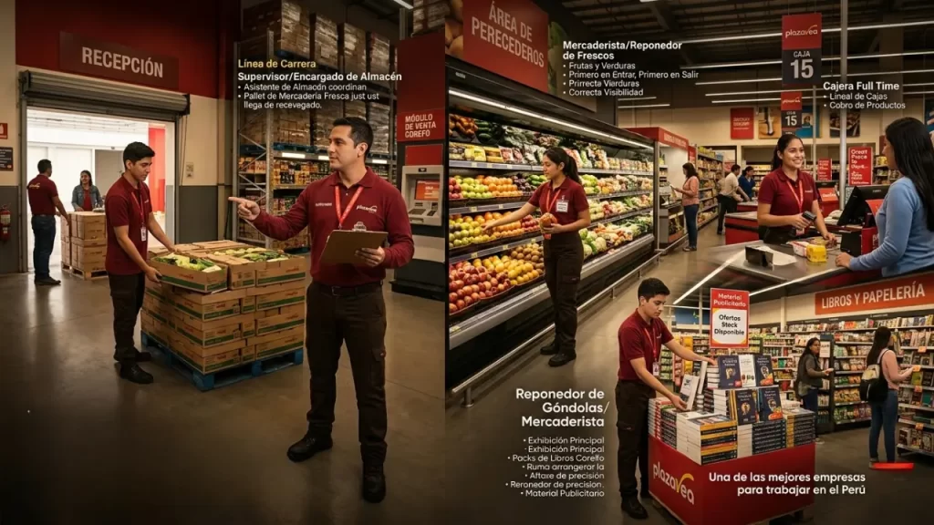 - Ubicación estratégica: Esta vacante es fija para la tienda de Plaza Vea Jockey Plaza. Si vives cerca o te queda a un solo carro, ¡ya tienes medio pie adentro!