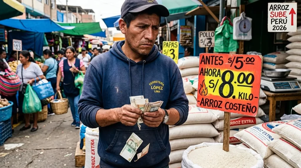 Si en el mercado te están diciendo «el arroz se va a poner por las nubes», no es chisme de comadre. Para el que vive con sueldo fijo o trabajando por diarias, que el kilo de arroz pase de S/5 a S/8 no es «inflación», es que tu almuerzo del mediodía se va al carajo y tu presupuesto del mes se descuadra completo.
